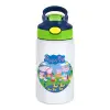 Peppa pig Family, Παιδικό παγούρι θερμό, ανοξείδωτο, με καλαμάκι ασφαλείας, πράσινο/μπλε (350ml)