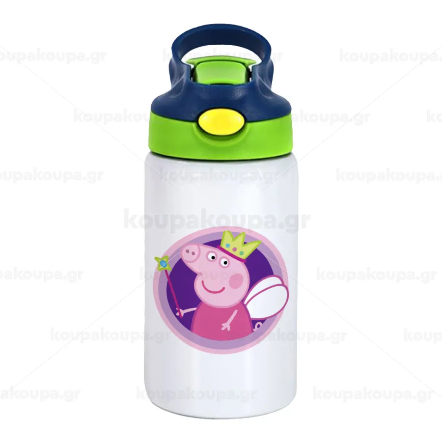 Peppa pig Queen, Παιδικό παγούρι θερμό, ανοξείδωτο, με καλαμάκι ασφαλείας, πράσινο/μπλε (350ml)