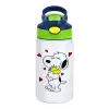 Snoopy Love, Παιδικό παγούρι θερμό, ανοξείδωτο, με καλαμάκι ασφαλείας, πράσινο/μπλε (350ml)