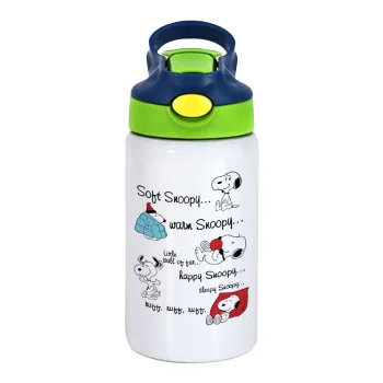 Snoopy manual, Παιδικό παγούρι θερμό, ανοξείδωτο, με καλαμάκι ασφαλείας, πράσινο/μπλε (350ml)