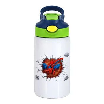 Spiderman wall, Παιδικό παγούρι θερμό, ανοξείδωτο, με καλαμάκι ασφαλείας, πράσινο/μπλε (350ml)