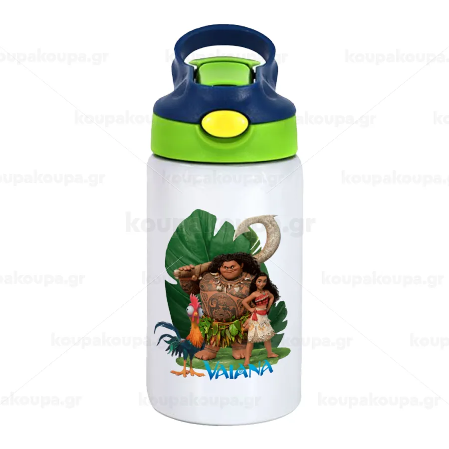 Vaiana, Παιδικό παγούρι θερμό, ανοξείδωτο, με καλαμάκι ασφαλείας, πράσινο/μπλε (350ml)