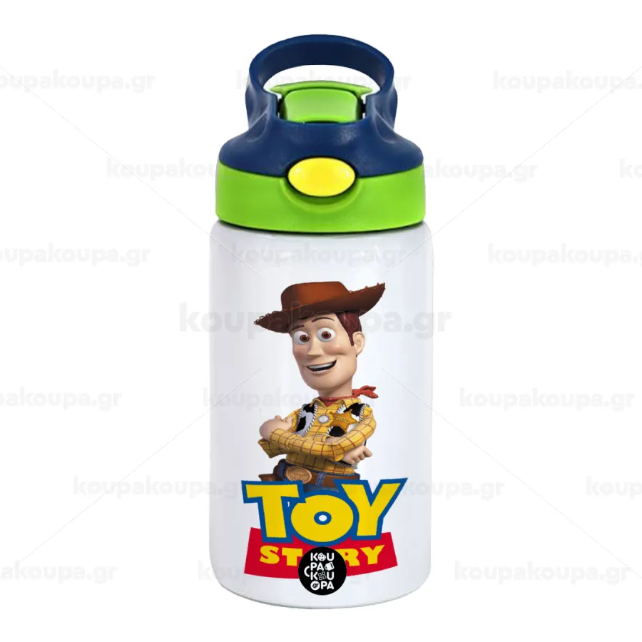 Woody cowboy, Παιδικό παγούρι θερμό, ανοξείδωτο, με καλαμάκι ασφαλείας, πράσινο/μπλε (350ml)