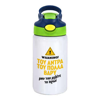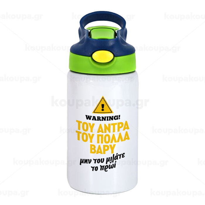 Του άντρα του πολλά βαρύ, Παιδικό παγούρι θερμό, ανοξείδωτο, με καλαμάκι ασφαλείας, πράσινο/μπλε (350ml)