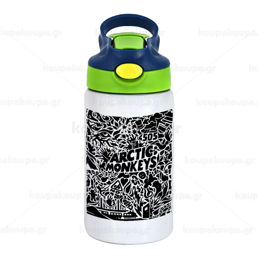 Arctic Monkeys, Παιδικό παγούρι θερμό, ανοξείδωτο, με καλαμάκι ασφαλείας, πράσινο/μπλε (350ml)