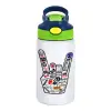 Best Rock Bands hand, Παιδικό παγούρι θερμό, ανοξείδωτο, με καλαμάκι ασφαλείας, πράσινο/μπλε (350ml)