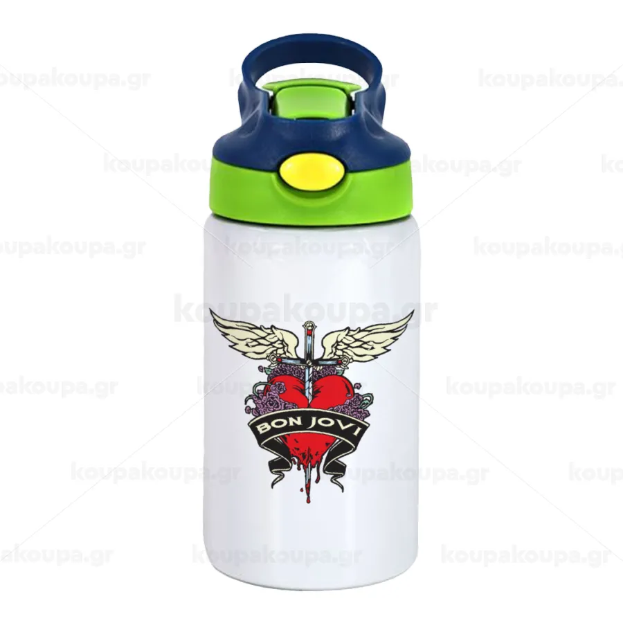 Bon Jovi, Παιδικό παγούρι θερμό, ανοξείδωτο, με καλαμάκι ασφαλείας, πράσινο/μπλε (350ml)