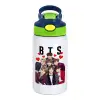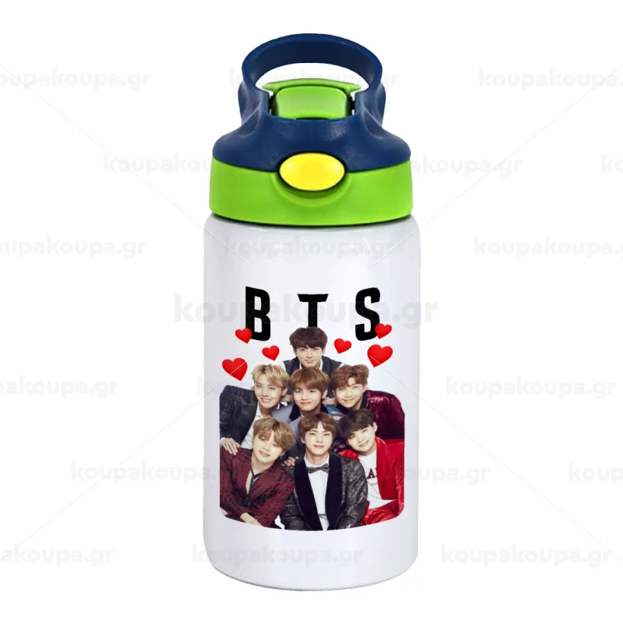 BTS hearts, Παιδικό παγούρι θερμό, ανοξείδωτο, με καλαμάκι ασφαλείας, πράσινο/μπλε (350ml)