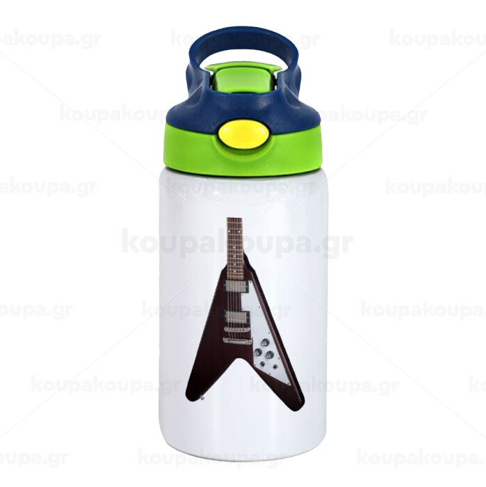 Guitar flying V, Παιδικό παγούρι θερμό, ανοξείδωτο, με καλαμάκι ασφαλείας, πράσινο/μπλε (350ml)