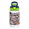 Maneskin stickers, Παιδικό παγούρι θερμό, ανοξείδωτο, με καλαμάκι ασφαλείας, πράσινο/μπλε (350ml)