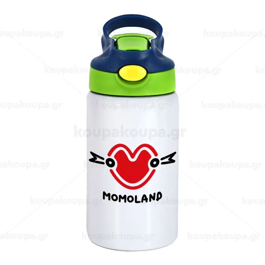 Momoland, Παιδικό παγούρι θερμό, ανοξείδωτο, με καλαμάκι ασφαλείας, πράσινο/μπλε (350ml)