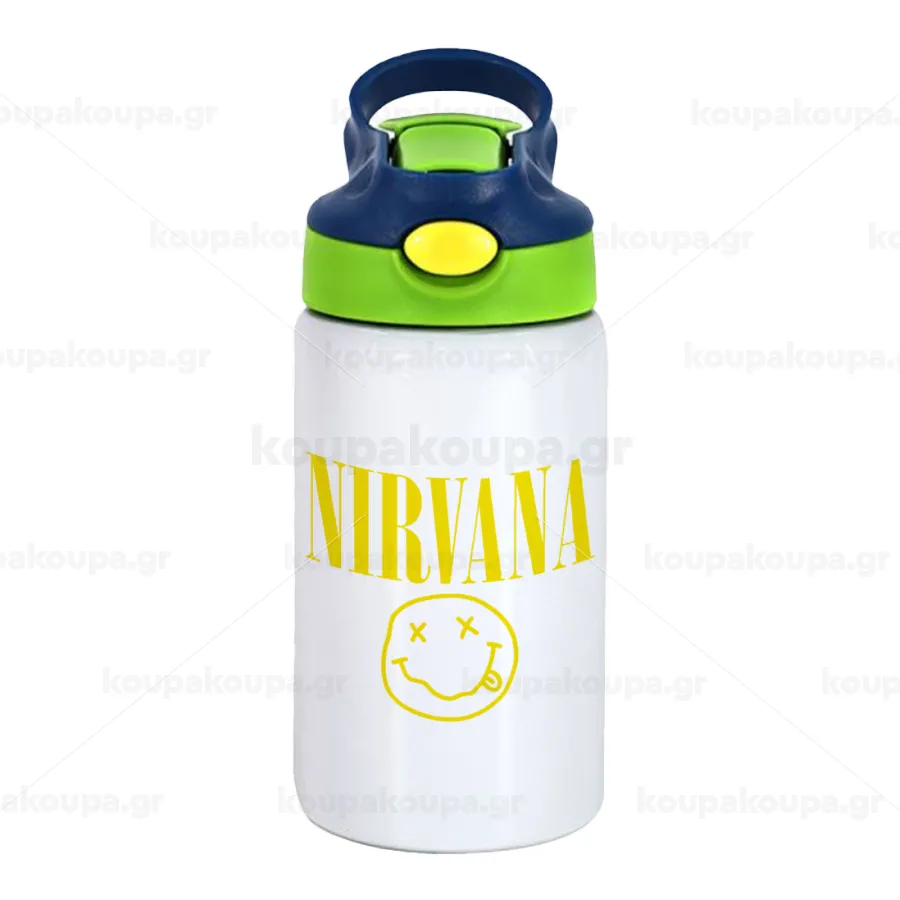 Nirvana, Παιδικό παγούρι θερμό, ανοξείδωτο, με καλαμάκι ασφαλείας, πράσινο/μπλε (350ml)