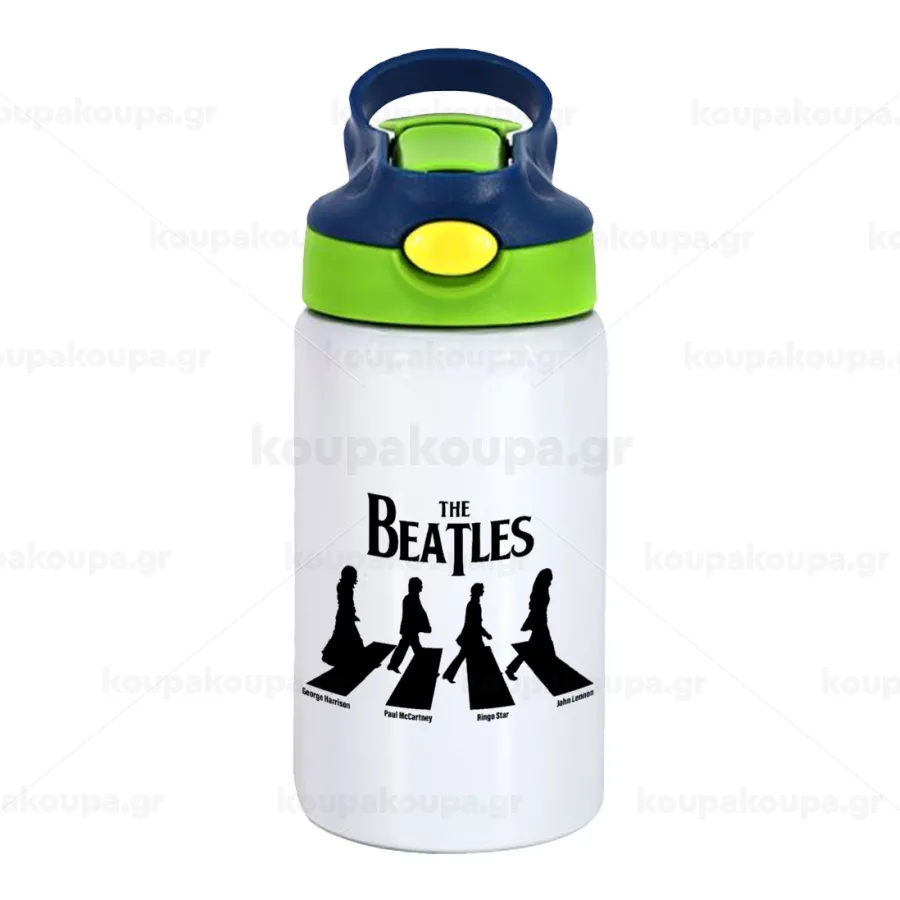 The Beatles, Abbey Road, Παιδικό παγούρι θερμό, ανοξείδωτο, με καλαμάκι ασφαλείας, πράσινο/μπλε (350ml)
