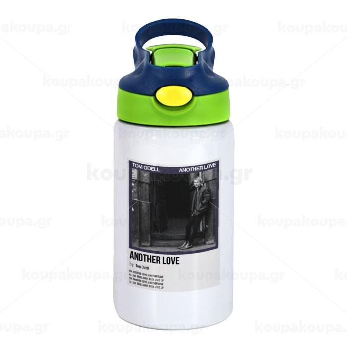 Tom Odell, another love, Παιδικό παγούρι θερμό, ανοξείδωτο, με καλαμάκι ασφαλείας, πράσινο/μπλε (350ml)