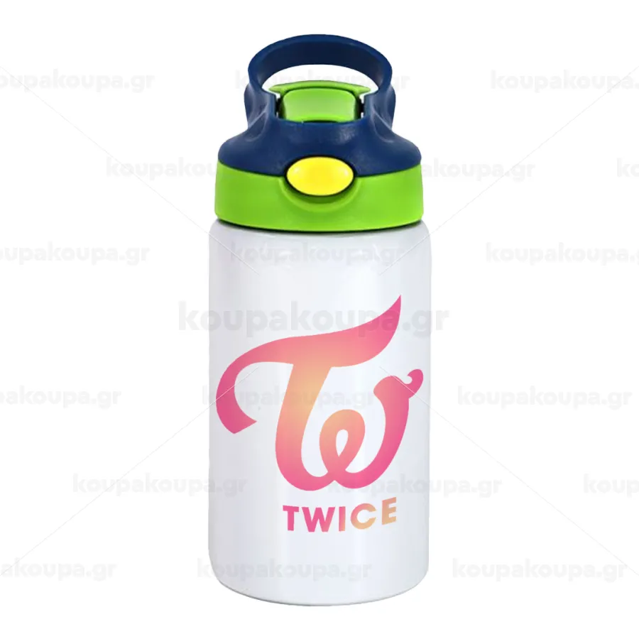 Twice, Παιδικό παγούρι θερμό, ανοξείδωτο, με καλαμάκι ασφαλείας, πράσινο/μπλε (350ml)