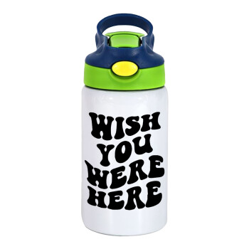 Wish you were here, Παιδικό παγούρι θερμό, ανοξείδωτο, με καλαμάκι ασφαλείας, πράσινο/μπλε (350ml)