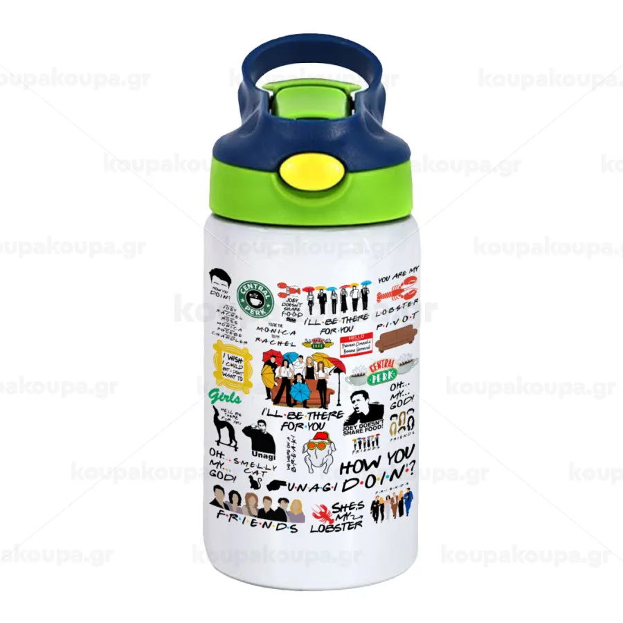 Friends, Παιδικό παγούρι θερμό, ανοξείδωτο, με καλαμάκι ασφαλείας, πράσινο/μπλε (350ml)