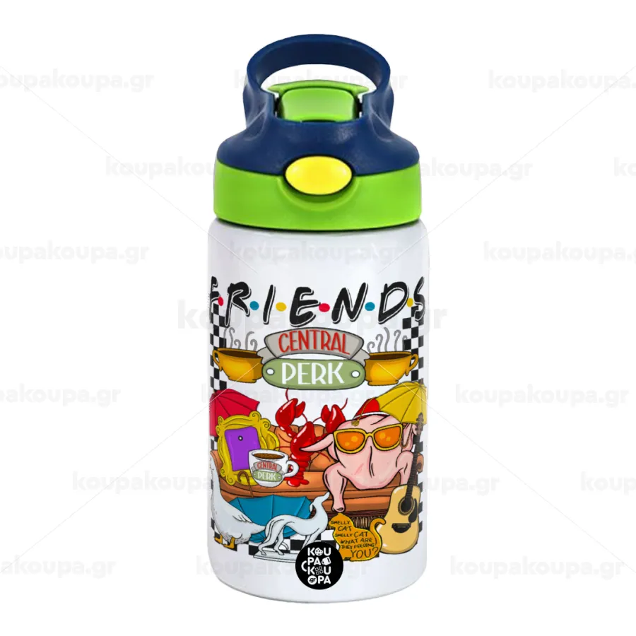 Τα φιλαράκια, Παιδικό παγούρι θερμό, ανοξείδωτο, με καλαμάκι ασφαλείας, πράσινο/μπλε (350ml)