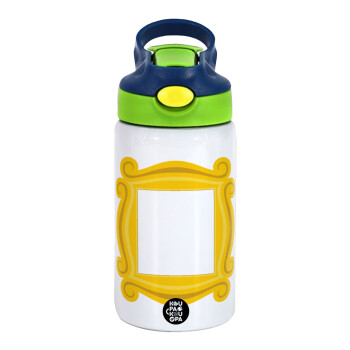 Friends frame, Παιδικό παγούρι θερμό, ανοξείδωτο, με καλαμάκι ασφαλείας, πράσινο/μπλε (350ml)
