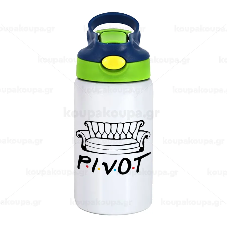 Friends Pivot, Παιδικό παγούρι θερμό, ανοξείδωτο, με καλαμάκι ασφαλείας, πράσινο/μπλε (350ml)