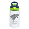 GOT House of Starks, winter coming, Παιδικό παγούρι θερμό, ανοξείδωτο, με καλαμάκι ασφαλείας, πράσινο/μπλε (350ml)