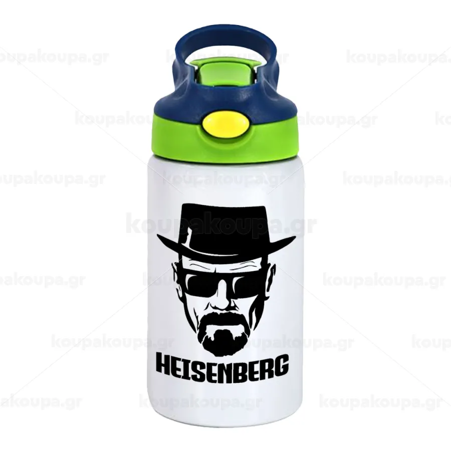 Heisenberg breaking bad, Παιδικό παγούρι θερμό, ανοξείδωτο, με καλαμάκι ασφαλείας, πράσινο/μπλε (350ml)