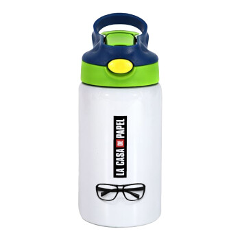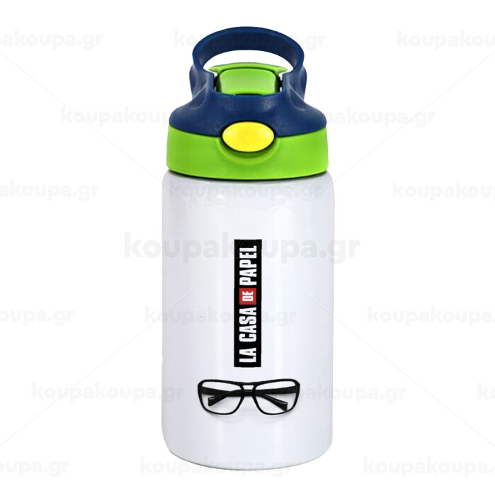la professor, γυαλιά, Παιδικό παγούρι θερμό, ανοξείδωτο, με καλαμάκι ασφαλείας, πράσινο/μπλε (350ml)