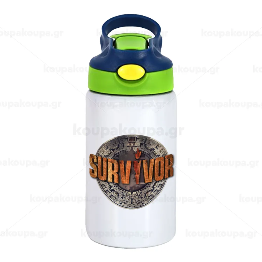 Survivor, Παιδικό παγούρι θερμό, ανοξείδωτο, με καλαμάκι ασφαλείας, πράσινο/μπλε (350ml)