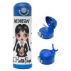 Wednesday Adams, i hate people, Παιδικό παγούρι θερμό, ανοξείδωτο, με καλαμάκι ασφαλείας, πράσινο/μπλε (350ml)