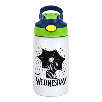 Wednesday Addams, Παιδικό παγούρι θερμό, ανοξείδωτο, με καλαμάκι ασφαλείας, πράσινο/μπλε (350ml)