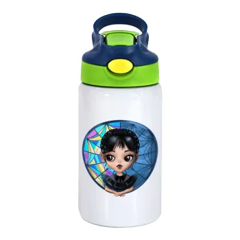 Wednesday big eyes, Παιδικό παγούρι θερμό, ανοξείδωτο, με καλαμάκι ασφαλείας, πράσινο/μπλε (350ml)