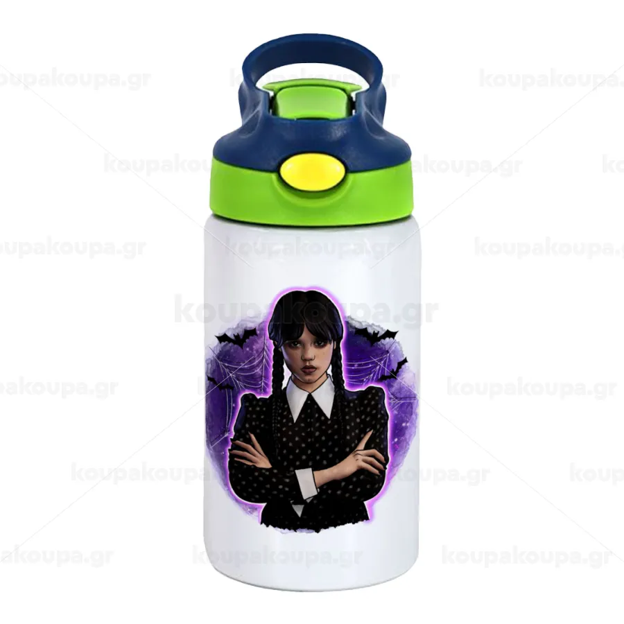 Wednesday moonlight, Παιδικό παγούρι θερμό, ανοξείδωτο, με καλαμάκι ασφαλείας, πράσινο/μπλε (350ml)