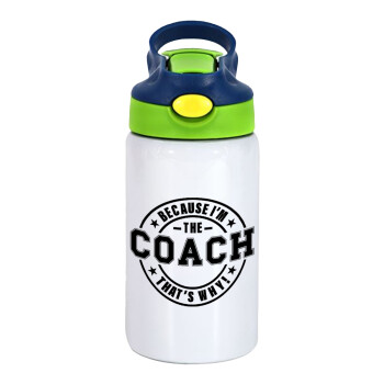 Because i'm the Coach, Παιδικό παγούρι θερμό, ανοξείδωτο, με καλαμάκι ασφαλείας, πράσινο/μπλε (350ml)
