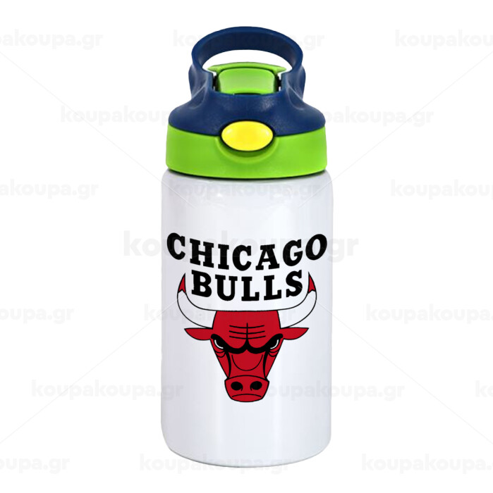 Chicago Bulls, Παιδικό παγούρι θερμό, ανοξείδωτο, με καλαμάκι ασφαλείας, πράσινο/μπλε (350ml)