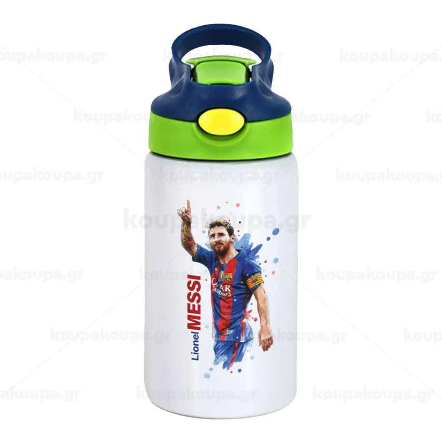 Λιονέλ Μέσι, Παιδικό παγούρι θερμό, ανοξείδωτο, με καλαμάκι ασφαλείας, πράσινο/μπλε (350ml)