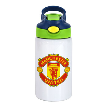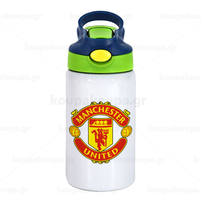 Manchester United F.C., Παιδικό παγούρι θερμό, ανοξείδωτο, με καλαμάκι ασφαλείας, πράσινο/μπλε (350ml)