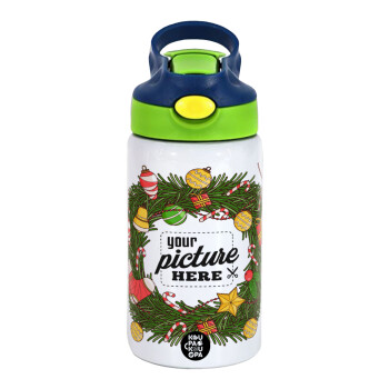 PHOTO Christmas twitch, Παιδικό παγούρι θερμό, ανοξείδωτο, με καλαμάκι ασφαλείας, πράσινο/μπλε (350ml)
