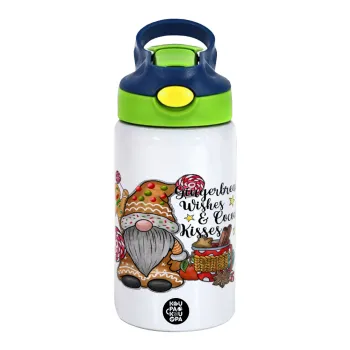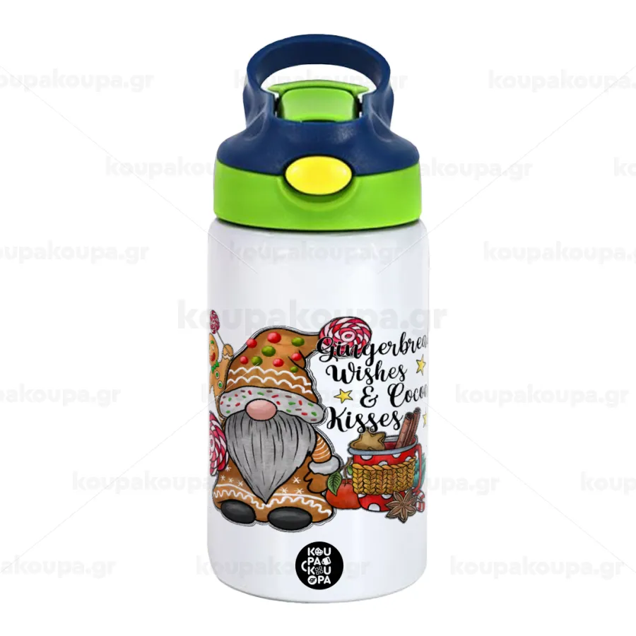Gingerbread Wishes, Παιδικό παγούρι θερμό, ανοξείδωτο, με καλαμάκι ασφαλείας, πράσινο/μπλε (350ml)