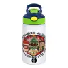 Joy, Peace, Believe, Hot Cocoa, Carols, Παιδικό παγούρι θερμό, ανοξείδωτο, με καλαμάκι ασφαλείας, πράσινο/μπλε (350ml)
