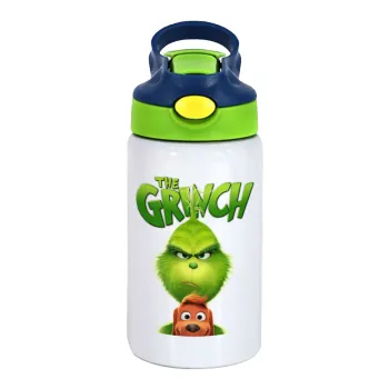 mr grinch, Παιδικό παγούρι θερμό, ανοξείδωτο, με καλαμάκι ασφαλείας, πράσινο/μπλε (350ml)