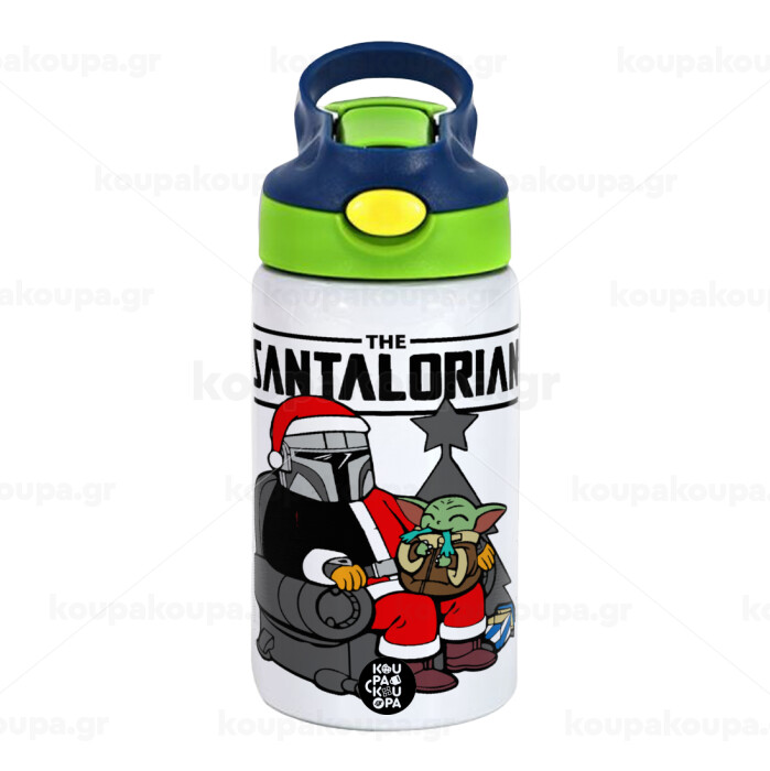 Star Wars Santalorian, Παιδικό παγούρι θερμό, ανοξείδωτο, με καλαμάκι ασφαλείας, πράσινο/μπλε (350ml)
