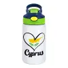 Cyprus flag, Παιδικό παγούρι θερμό, ανοξείδωτο, με καλαμάκι ασφαλείας, πράσινο/μπλε (350ml)