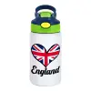 England flag, Παιδικό παγούρι θερμό, ανοξείδωτο, με καλαμάκι ασφαλείας, πράσινο/μπλε (350ml)