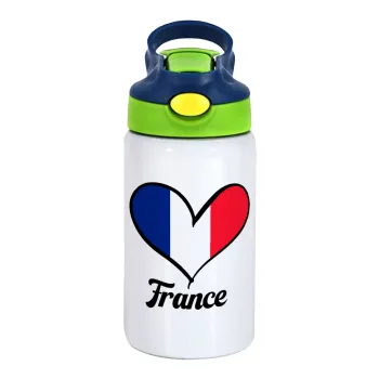 France flag, Παιδικό παγούρι θερμό, ανοξείδωτο, με καλαμάκι ασφαλείας, πράσινο/μπλε (350ml)