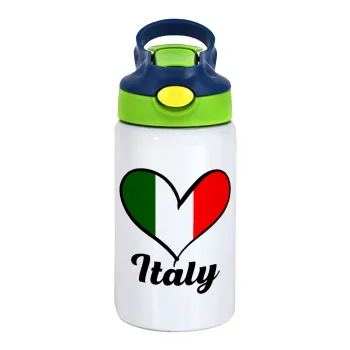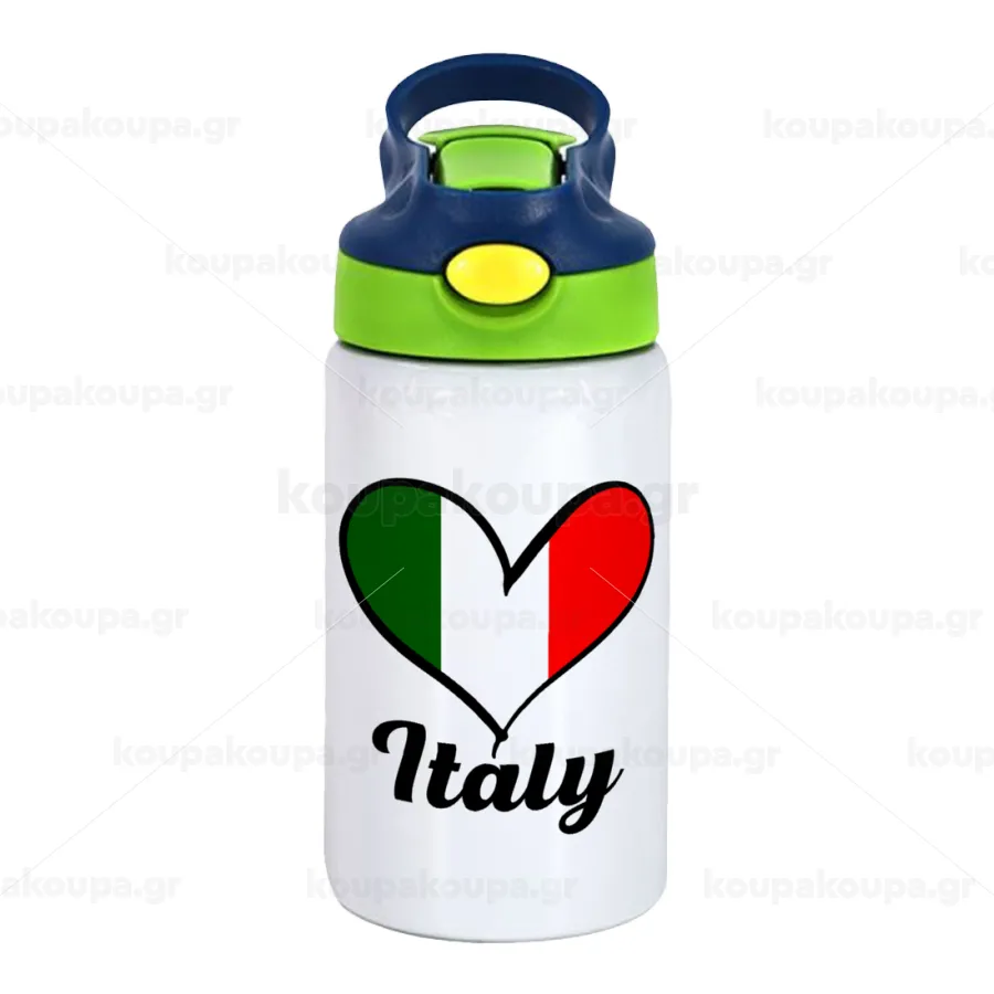 Italy flag, Παιδικό παγούρι θερμό, ανοξείδωτο, με καλαμάκι ασφαλείας, πράσινο/μπλε (350ml)