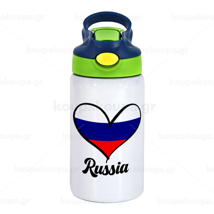 Russia flag, Παιδικό παγούρι θερμό, ανοξείδωτο, με καλαμάκι ασφαλείας, πράσινο/μπλε (350ml)