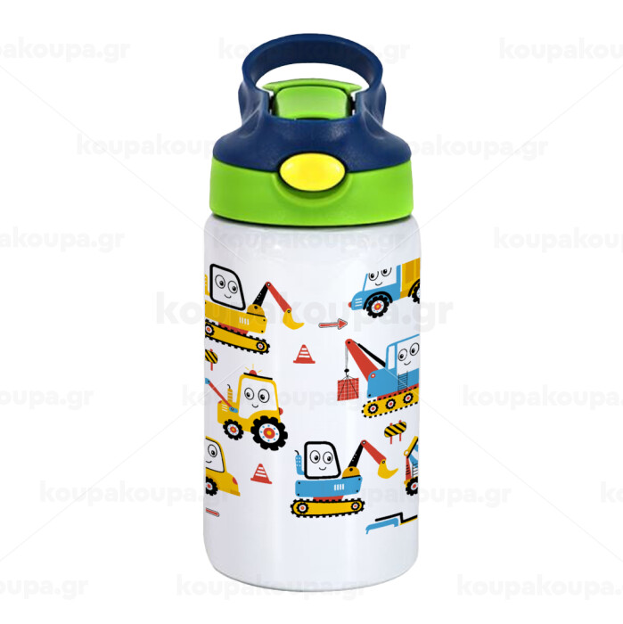 Hand drawing building truck, Παιδικό παγούρι θερμό, ανοξείδωτο, με καλαμάκι ασφαλείας, πράσινο/μπλε (350ml)