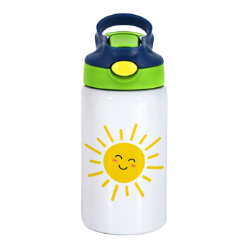 Happy sun, Παιδικό παγούρι θερμό, ανοξείδωτο, με καλαμάκι ασφαλείας, πράσινο/μπλε (350ml)