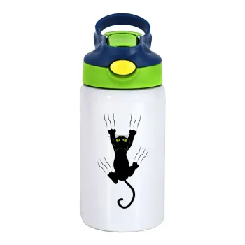 Γατούλα γρατζουνιά, Παιδικό παγούρι θερμό, ανοξείδωτο, με καλαμάκι ασφαλείας, πράσινο/μπλε (350ml)