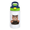 Cool cat, Παιδικό παγούρι θερμό, ανοξείδωτο, με καλαμάκι ασφαλείας, πράσινο/μπλε (350ml)